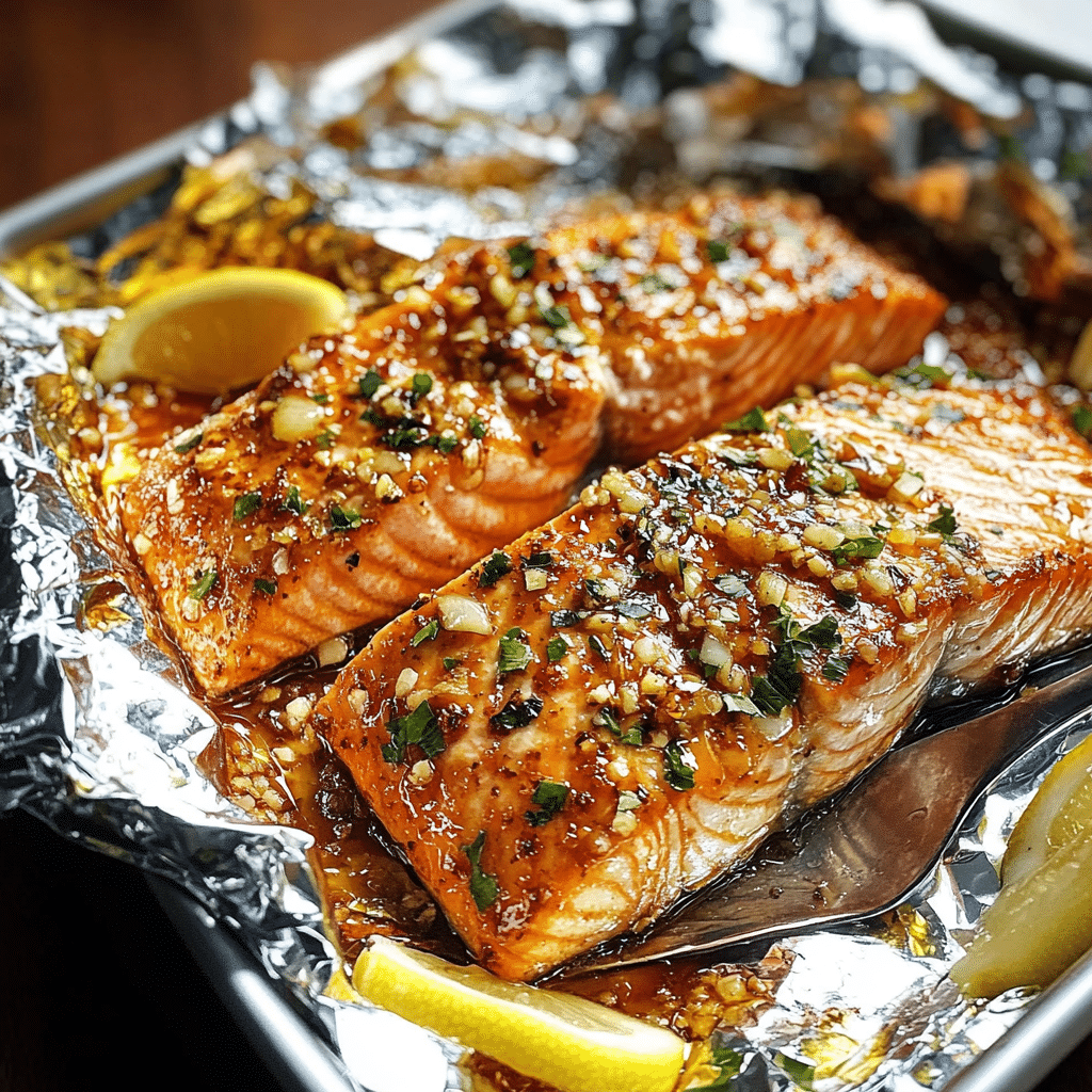 - Garnish and Serve: Once the salmon is cooked, carefully open the foil packets (be cautious of the steam). Garnish the salmon with freshly chopped parsley and serve with lemon wedges on the side. The lemon adds a bright, fresh contrast to the sweet and savory glaze.