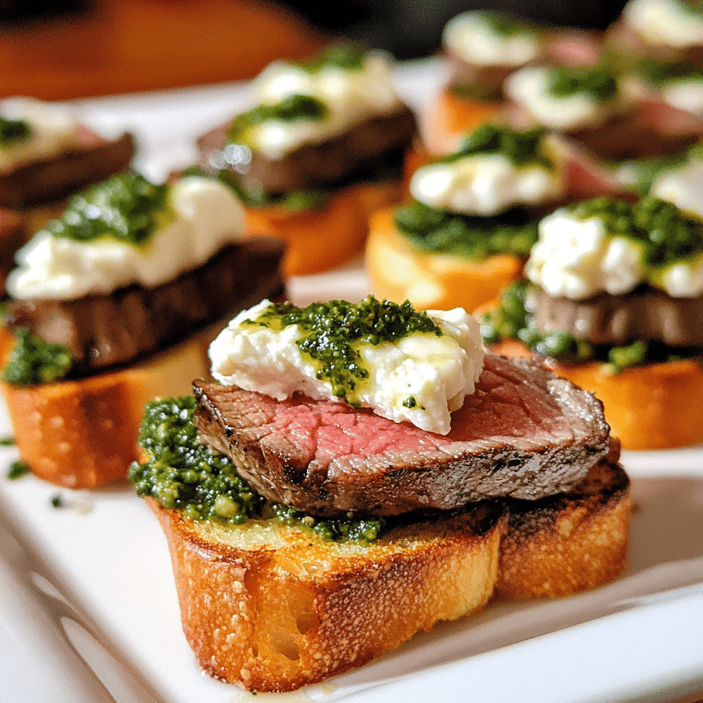 Recipe Variations of Beef Tenderloin Crostini with Goat Cheese and Pesto
