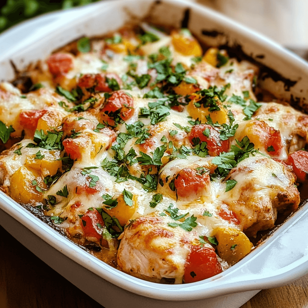 Make It Spicier: Add chopped jalapeños or extra chili flakes to bring the heat. Bulk It Up: Add quinoa or extra rice to stretch the recipe for more servings. Don’t Overbake: Overbaking can dry out the chicken—remove when bubbly and just golden. Use Leftovers: Repurpose leftovers in wraps, stuffed bell peppers, or taco bowls.