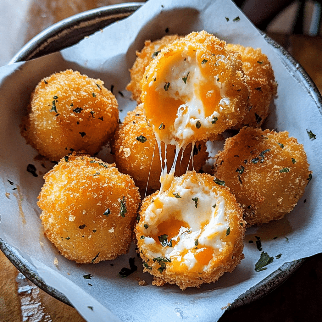 - Crispy and Gooey Texture: Each ball has a crispy exterior thanks to the coating, while the inside stays creamy and melty, making every bite a delicious contrast of textures.