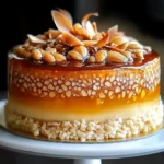 9. Add the Topping: Pour the caramelized almond mixture over the cake, covering the top evenly.