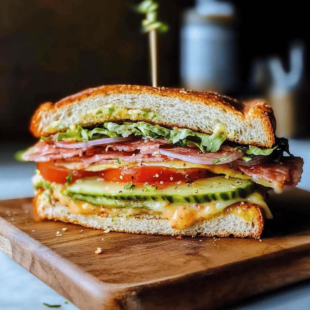 Absolutely! You can replace the meats with roasted veggies, hummus, or extra cheese to make it vegetarian-friendly. - How do I keep the sandwich fresh?