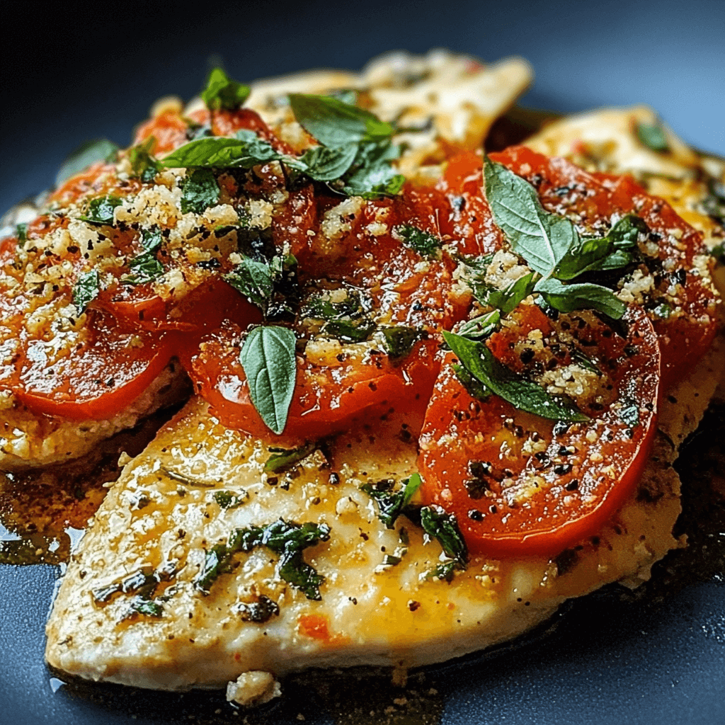 - Fresh Herbs: Oregano, thyme, basil, and parsley add bright, earthy flavors that complement the chicken and tomato topping beautifully.