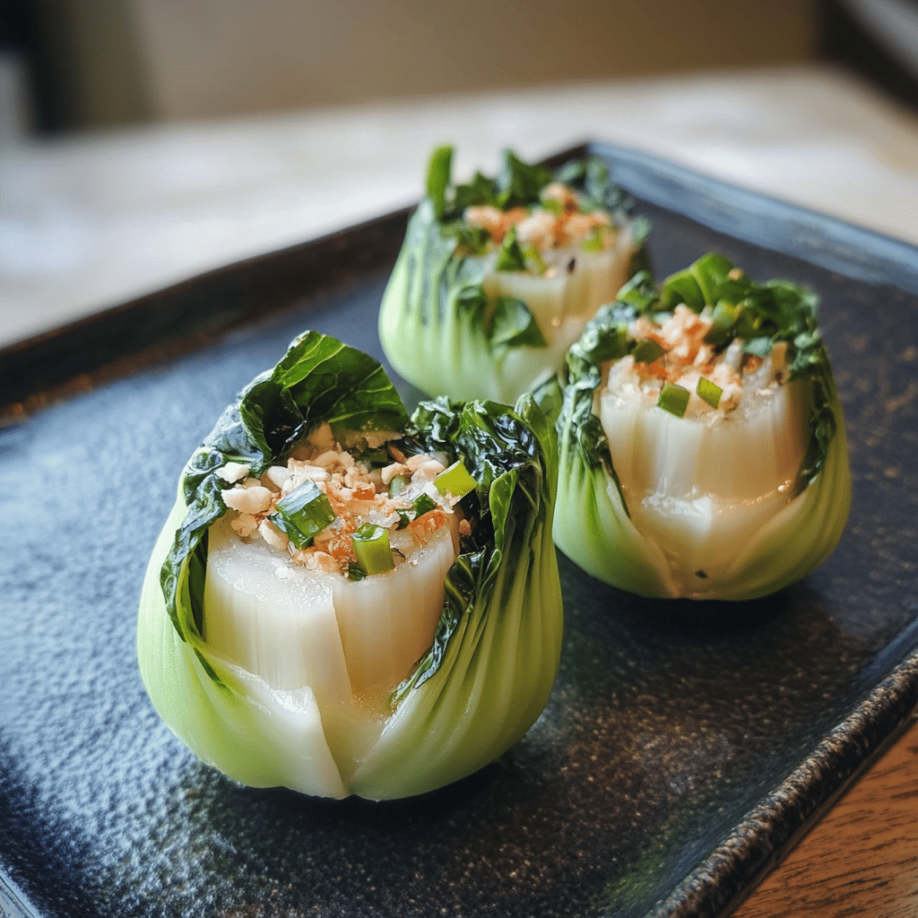 Stuffed Baby Bok Choy Cups are a delightful, healthy, and flavorful dish that can serve as an appetizer, side dish, or even a light main course. This recipe offers a perfect balance of tender, leafy bok choy paired with a savory stuffing made from ground chicken or beef, aromatic herbs, and savory seasonings. The best part is that it’s a versatile recipe, so you can adjust the stuffing ingredients according to your preference, making it suitable for various tastes. Whether you’re looking for a unique dish to serve at your next gathering or a nutritious weeknight dinner, Stuffed Baby Bok Choy Cups are sure to impress. With their vibrant appearance and delicious taste, these cups are bound to become a favorite in your culinary repertoire.