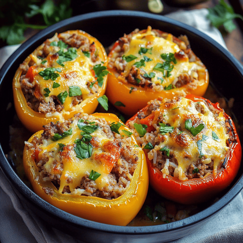 - Cheesy Beef and Rice Stuffed Peppers: Add extra cheese into the filling and sprinkle a generous layer on top for a cheesy, gooey experience.